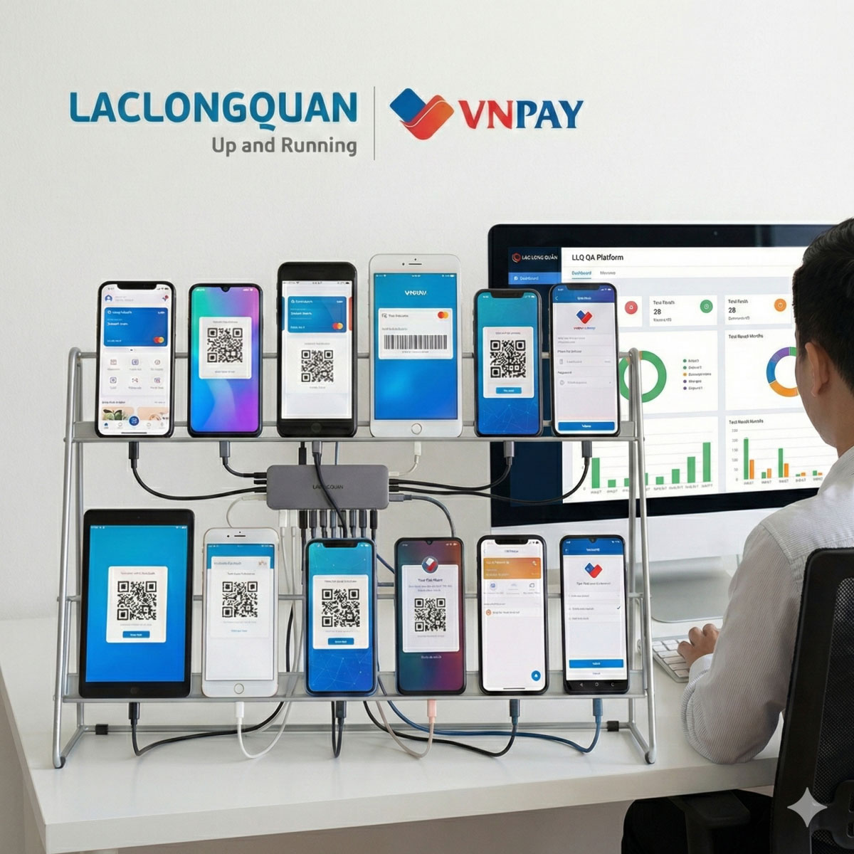 Lac Long Quan partners with VNPay to provide expert IT staffing for the deployment of the LLQ QA Platform automated testing system. The project focuses on the “Device Farm” solution to optimize cross-platform testing on real devices and ensure digital payment service quality.